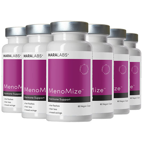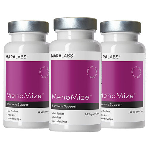 MenoMize™ is a non-hormonal menopause support formula designed to help women navigate perimenopause, menopause, and postmenopause. It combines bioavailable resveratrol, black cohosh, and carnosic acid to support hormonal balance, temperature regulation, mood stability, and hair health.